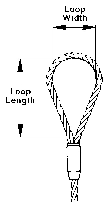 Std. Loop size length x width inch | Approx. min sling length ft | ML Sub. Assbly. HD Thimble Standard Loop | ML only HD Thimble Standard Loop | ML Sub. Assbly. HD Thimble both ends | ML only HD Thimble Standard Loop |
