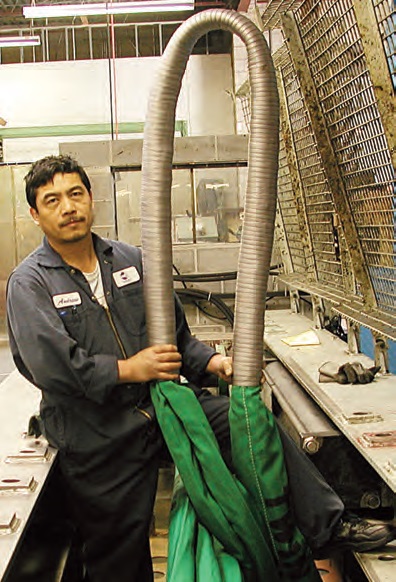 This is a custom made eye protection for a Twin-Path sling where the ‘eye’ of the sling needed to fit a specific sized collar. The body/eye protection is fully removable (NOT glued to the sling). Also, this type of protection reduces theTwin-Path® sling width to about 1/2 of it’s design size. Fully proof loaded and certified, no lifting capacity reduction.