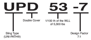 UPD slings are made in capacities up to 70,000 lbs. vertical. These Roundslings conform to ASME B30.9 Chapter six and Cordage Institute Standard CI 1905. They have a double Polyester outer cover made from the same colour (inner and outer cover colour are the same) The core yarn is also polyester. These slings are colour coded to depict a certain sling capacity. However, be aware that the colour code of Roundslings is NOT governed by ASME B30.9. Never select a sling by it’s colour. Always read the tag information. |