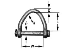 Common shackle to use with boat lifting slings. Web slings eyes may be tapered. Furnished with a klik pin for fast and easy pin removal. Shackle body made from carbon steel, shackle pin made from alloy steel. Galvanized. | ![]() |