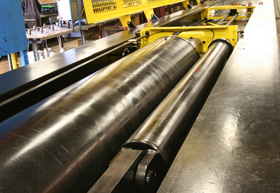 The test bed has a load range between 1,000 lbs to 1,200,000 lbs and operates with 3 cylinders (2 shown here) and 3 calibrated load cells.