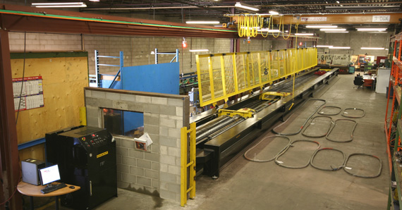 Top: The test bed is 103 ft long with a cylinder stroke of 8 ft to be able to also test high elongation synthetic slings and ropes. A newly installed 3 ton overhead crane enables us to load heavy shackles, large diameter slings, and other heavy test samples.