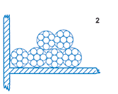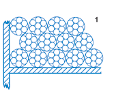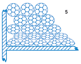 Winding on smooth or flat faced drums The first layer must be wound tight and under tension. Take a mallet or a piece of wood and tap the wraps tightly against each other (see picture 1); but not so tight that the rope strands interlock (see picture 2), but tight enough that the rope can’t be shifted on the drum. If the first layer is wound too loose, the next layer will wedge a gap into the first layer causing that layer to ‘pull in’ (see picture 3). A too tightly wrapped first layer will not allow the next layers enough space between wraps (see picture 2). In any case, the first layer, as well as all of the layers, must be wound on to the drum with sufficient pre-tension (5-10% of the rope’s WLL is a good measure). If wound with no tension at all, the rope is subjected to premature crushing and flattening caused by the ‘under load’ top layers (see picture 4). Even if wound on properly during installation, the first layer will loosen somewhat during service. When the first layer becomes slack (the pre-tension is gone), this initial procedure MUST be repeated in regular intervals. Otherwise, the tensioned ‘hard’ wraps will severely crush the bottom layers (picture 5). |