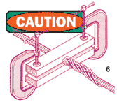 Winding on grooved drums If the first layer, or layers, are only used from time to time, they will loose their tension on the drum and start to flatten out due to the high pressures of the loaded layers. Repeat this pre-tensioning procedure regularly. As with tower cranes, for example, which have a long rope length installed and rise as the building goes up, pre-tensioning will not be possible. In these cases it may be advisable to install a shorter rope length first. Otherwise, you may have to replace the entire rope length because of crushing and flattening of the bottom layers. If this not possible, extra care must be taken to pre-tension the rope on the drum during installation. Whatever you do, DO NOT run the rope through a ‘tightening’ device (see picture 6), e.g. two wooden blocks clamped together. YOU WILL DESTROY |