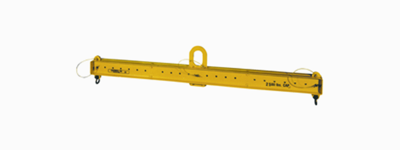 Versatile beam had adjustable spreaders and lifting bail standard to allow for handling of a wide range of loads with a single lifting beam. Product can be used with provided shackles or add optional hooks for increased versatilitiy.