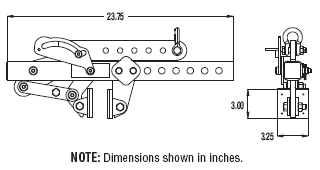 Model Number | Rated Capacity (lbs.) | Load Width Min. - Max. (in.) | J (in.) | L (in.) | HR Min. - Max. (in.) | A (in.) | B (in.) | C (in.) | Weight (Ibs.) |
