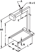 Model Number | Capacity (tons) | L | M | N | W | E | A | B | C | J* | HR | Weight (lbs.) |