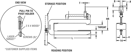 Model Number | Min. Pipe I.D. (in.) | Throat (in.) | D (in.) | L (in.) | HR (in.) | A (in.) | B (in.) | C (in.) | T (in.) | Capacity (lbs.) | Weight (lbs.) |