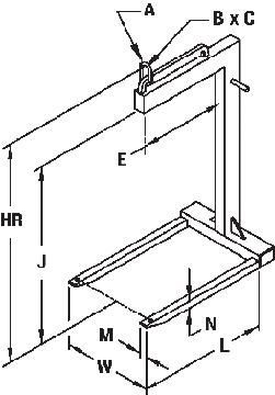 Model Number | Capacity (tons) | L (in.) | M (in.) | N (in.) | W (in.) | E (in.) | A (in.) | B (in.) | C (in.) | J (in.) | HR (in.) | Weight (lbs) |