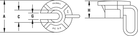 Model Number | Rated Capacity (tons) | A (in.) | C (in.) | H (in.) | G (in.) | Weight (lbs.) |