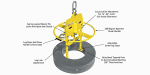The New Model 83E Ergonomic Vertical Eye Coil Lifter is and efficient way to handle vertically stacked coils with ID’s of 16”, 20” and 24”. The lifter is easy to actuate with a spring loaded ergonomic style grip lever and 360º operator guide handle. The standard oblong lifting eye is designed to fit a wide range of crane hooks. The lifting feet are designed to accommodate 5/8” blocking! As with all Caldwell Strong-Bac lifters, the model 83E Ergonomic Vertical Eye Coil Lifter is designed and manufactured to ASME B30.20 BTH-1, category B, service class 2.