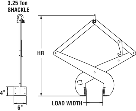 - A manual latch is standard and locks the tong arms for easy placement on the load.