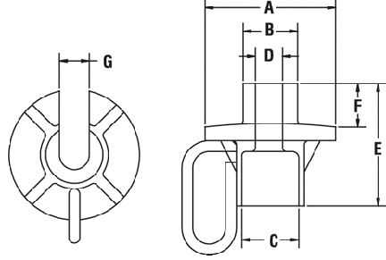 Model Number | Rated Capacity (tons) | A (in.) | B (in.) | C (in.) | D (in.) | E (in.) | F (in.) | G (in.) | Weight (lbs.) |
