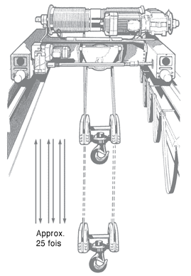 Tester l’équipement AUCUNE circonstance ne justifierait de tester la grue avant la période de rodage du câble. Si vous surchargez un câble qui n’a pas encore été rodé, vous courez le risque d’endommager le câble de façon définitive. Une attention toute particulière doit être portée à tout équipement multicouche. Tel que mentionné précédemment des surcharges des couches supérieures peuvent endommager les couches inférieures et pourraient écraser les câble. Si possible testez la grue avec un câble enroulé seulement sur la première couche du tambour. Si la grue est équipée d’un tambour lisse il faut s’assurer tout particulièrement que la câble ne se croise pas sur lui-même lorsque la grue passe au test. Après le test (surchargement) vous devrez répéter les procédures d’enroulement tel que Décriteen (Enrouler sur des tambours lisses). |