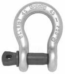 Les manilles Crosbyᴹᴰ à large corps existent dans des capacités allant de 75 tonnes à 1000 tonnes. | Les manilles standards ont un corps arrondi et ont des capacités nominales allant de 1/3 tonne à 400 tonnes. | Les crochets doivent avoir une épaisseur suffisante pour garantir un rapport D/d adéquat pour l’élingue, particulièrement lorsque l’élingue est employée dans un attelage en panier inversé, à savoir que le CORPS de l’élingue est placé dans les crochets et que les BOUCLES de l’élingue sont tournées vers le bas. |