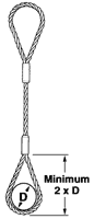 Le rapport D/d est le diamètre autour duquel l’élingue est recourbée divisé par le diamètre du corps de l’élingue. Exemple: Un câble métallique de 1/2 po de diamètre est recourbé autour d’un tuyau de 10 po de diamètre ; le rapport D/d est donc 10 po divisé par 1/2 po, soit un rapport D/d de 20:1. Ce rapport a un effet sur la capacité nominale des élingues. |