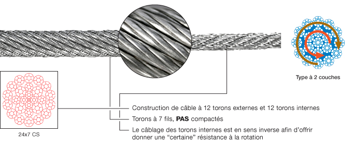 24×7 CS Câble d’acier a torons compactes, résistants à la rotation
