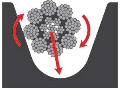 Des angles d’attaque élevés sont souvent à l’origine de l’introduction d’une torsion dans le câble métallique. S’étant finalement développé en cage à oiseaux ou en noyau saillant, le câble métallique doit être jeté prématurément. PlastGuard réduit efficacement l’absorption de torsion par le noyau et fournit une forme stabilisatrice pour les torons extérieurs. Il permet de prolonger la durée de vie du câble sur des moufles problématiques à un niveau acceptable ou plus économique.