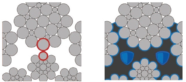 La durée de vie des câbles métalliques diminue considérablement en cas de manque de lubrification. La ré-lubrification de l’âme d’un câble métallique, cependant, peut souvent être un problème: les méthodes de ré-lubrification courantes – y compris la lubrification sous pression – ne peuvent pas délivrer le nouveau lubrifiant à l’âme intérieure.