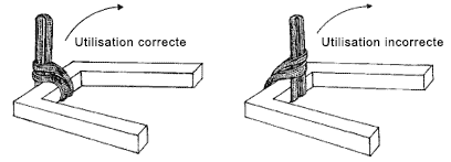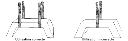 L’élingue devrait être installée d’une manière qui permet un contrôle approprié de la charge. Il est dangereux d’utiliser une seule élingue pour lever une charge qui tend à se déplacer et à se libérer. Soyez certain de lever à partir du centre de gravité. Élevez la charge avec prudence. Si la charge n’est pas balancée, abaissez la et corrigez la position de l’élingue jusqu’à ce que le point d’équilibre soit obtenu. Soyez sûr de tenir compte de l’angle élingue – charge et d’utiliser une protection contre l’abrasion et les bords tranchants pouréviter que l’élingue ne soit coupée. Des attelages par collier étrangleur standards compressent la charge sur 3 côtés seulement. |