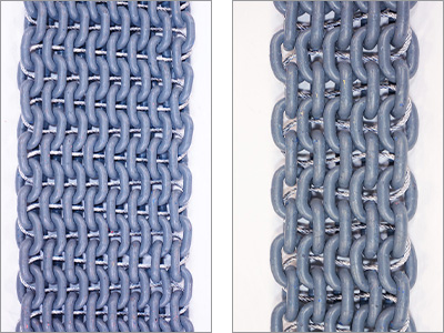 ![]() CMSS SLIM Chain Mesh Slings are made from 7/32” chain diameter 4 or 7 strands and 5/16” chain diameter 5 or 8 strands. The alloy chains are made in either Germany or the USA. Above shown: 5/16 x 8 (left) and 5/16 x 5 (right) |