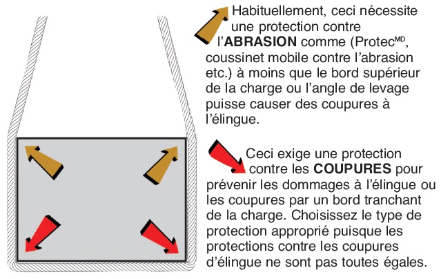 PROTECTION CONTRE LES COUPURESElle protège l’élingue des coupures par des bords tranchants. Le degré de protection varie selon l’élingue, le protecteur choisi, et l’acuité du bord tranchant lui-même. |