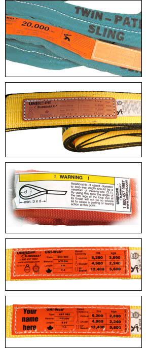 • Uni-Web® Edge Tech Slings are tagged with a black/orange letter/tyvac tag combination.