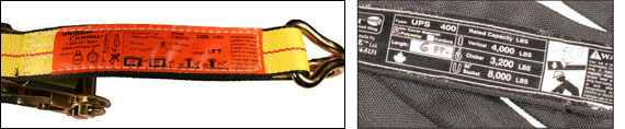 In addition we have developed a vinyl tag system. For the most popular sling- and tie-down sizes we have pre-printed tags with large legible capacity information and important safety precautions. The wire rope sling tags are spliced into the sling eye and can not “ride” onto the sling body; they will remain in the protected “crotch” area of the sling loop.