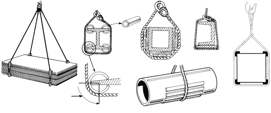 Use proper corner protection. A sharp steel edge will cut through any wire rope sling; at least it will permanently damage the sling. Sliced steel pipes have proven to an effective corner protector. For square and round objects proper wooden padding will be sufficient. Before making the final lift do a trial lift and check if the padding is strong enough and does not crack under the load weight.