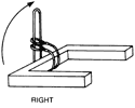 Turning the load with a double choker (that is a loop & loop sling used inverted) gives good load control. To rig place both sling eyes on top of the load, pointing in the OPPOSITE direction of the turn. The body of the sling is then passed under the load and through both eyes. | ![]() |