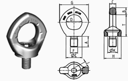 Ring Bolt LBG(3)-RSStainless lifting point with a special bolt. The load ring pivots and additionally swivels in all directions. Before loading, adjust the load ring to the direction of the applied force. Only a single tapped bore is required. |