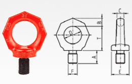 Eye Bolt RSWith the following characteristics, distinctive in comparison to the conventional DIN-eye bolts. An octagonal shape symbolizing quality class 8. Coloured red, the identification colour of quality class 8. Identification: clear WLL indication for the most unfavourable load direction F2 (not permissible for DIN 580). For applications of the RS eye bolt, there is a reliable-operations certification by the respective technical Committee. It does not automatically adjust to the direction of pull. Not according to the RAG-Standard (Germany). |