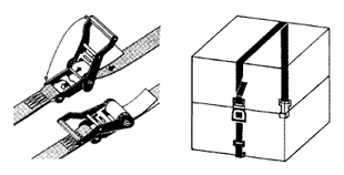 Complete with Ratchet and End Fittings as below. Standard Length is 20 ft (2 ft Tail, 18 ft Strap) Rated Capacity: 3,300 lbs All Tie Down systems come with a sturdy vinyl Capacity Tag stating |