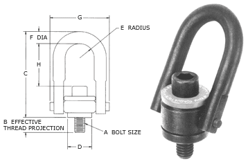 Dimensions (inch) for Crosby Swivel Hoist Rings
