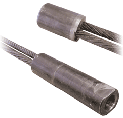 Made from 18 mm PYTHON® Super 8-V wire rope having a plastic coated core. The plastic coating prevents premature core failures as experienced with standard 6-strand ropes in the same application. Also, this rope rope is stronger and has better shock absorption capabilities. Fits Asplundh LR 50 Aerial Boom Trucks. This is a stock item! We also manufacture such Double Rope Assemblies for other applications. |