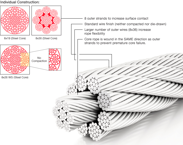 8×19 / 8×26 / 8×36 IWRC for Overhead Cranes