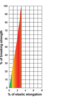 Elastic ElongationThe coloured area under the curve represents the rope’s energy absorption capability.