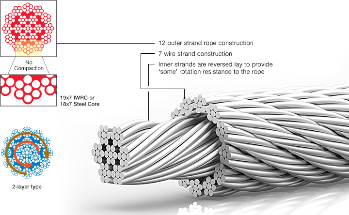 Traditional style type rotation resistant rope mainly used on older mobile, truck and yard cranes. Not recommended for tower cranes.