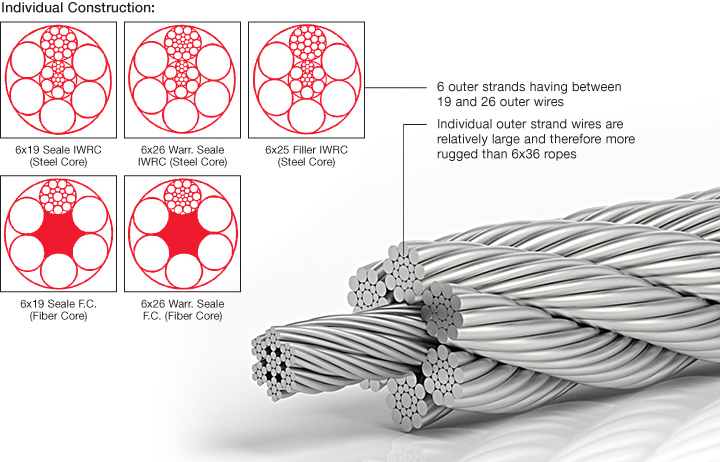 Applications which demand a more crush- & abrasion resistant wire rope. Winch lines, railings, suspension cables, boom pendants, boom hoist ropes, anchor lines. Also used as hoisting rope on many old design overhead cranes.