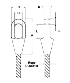 Wire Rope diameter | A | B | C | D | K | L | lbs each |