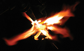 After blade cutting, mount upright. Do not use the cutting nozzle of your torch but attach a small tip. | Carefully melt and fuse together all individual wires. |