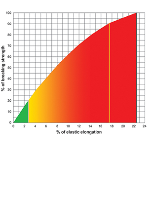 Elastic ElongationThe coloured area under the curve represents the rope’s energy absorption capability.