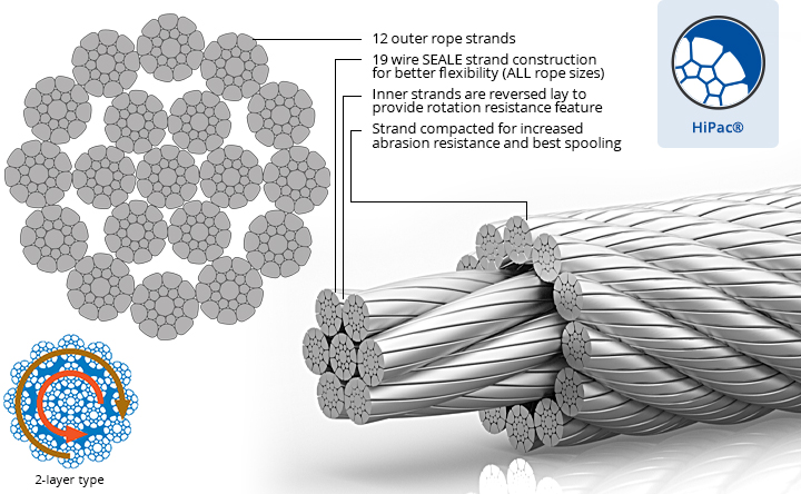 Rotation resistant for multi-layer drums (HiPac® strand compacted)