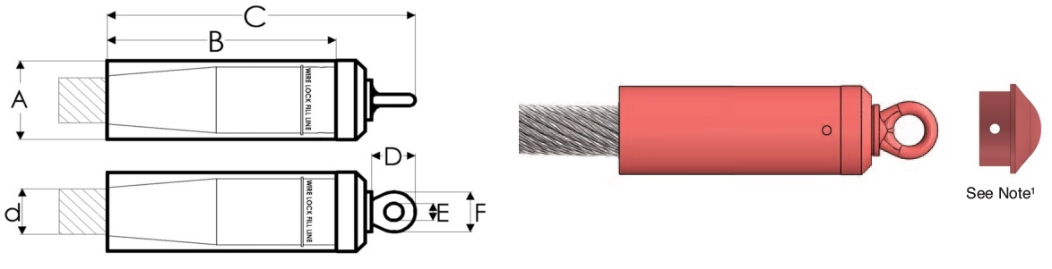 Note1 This is an optional cap for customers who either want an additional cap or do not want the eye. With the cap the complete button length is dimension “B” plus between 3/4” and 1”. If a tighter tolerance is required, contact Unirope Engineering for details. Note2 “C” is a standard dimension which can modified to any desired additional length, but length “B” is the minimum length we carry in stock inventory. If, for any reason” “B” needs to be shorter we can manually cut down “B” but this depends on button size . Conversely, if “C” needs to be longer the end cap length can be modified. Ask for details if this comes up. |