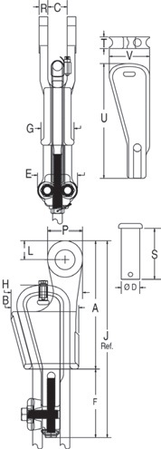 Wire Rope Dia. | S-423T Assembly with Round Pin and Cotter Pin |
