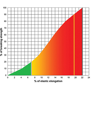 Elastic ElongationThe coloured area under the curve represents the rope’s energy absorption capability.