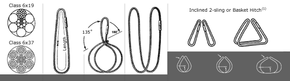 Warning: All Capacities and WLLs shown meet the specification of the Wire Rope Technical Board. All Capacities and WLLs are based on a pin or object diameter which has at least 5 times the diameter of the sling body. When a matching capacity round body shackle is used the D/d ratio becomes 2:1 or less. Depending on actual D/d ratio the sling capacity must be reduced by 35% to 45%! |
