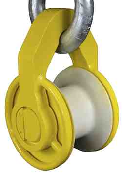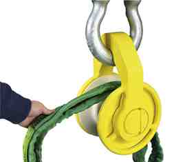 The Synthetic Equalizer Block is used to maintain tension on all legs of the sling during a lift. Rather than adjusting slings and hooks prior to completing a lift, the Synthetic Equalizer Block will automatically adjust itself when load is put on the device from the sling. This product was designed specifically for Twin-Path® slings and is the only rolling block for synthetic roundslings.