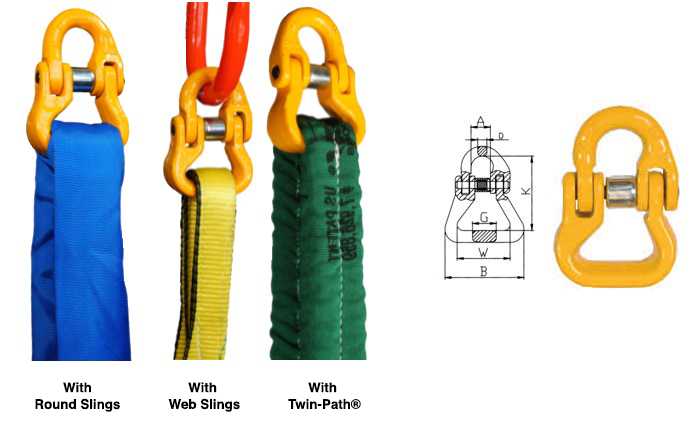 Rigger’s Choice connectors allow the user to select and create synthetic sling assemblies, bridle slings, and special purpose designed variations. The web sling connector is designed with an extra wide body to accept web-, round-, or Twin-Path® slings.